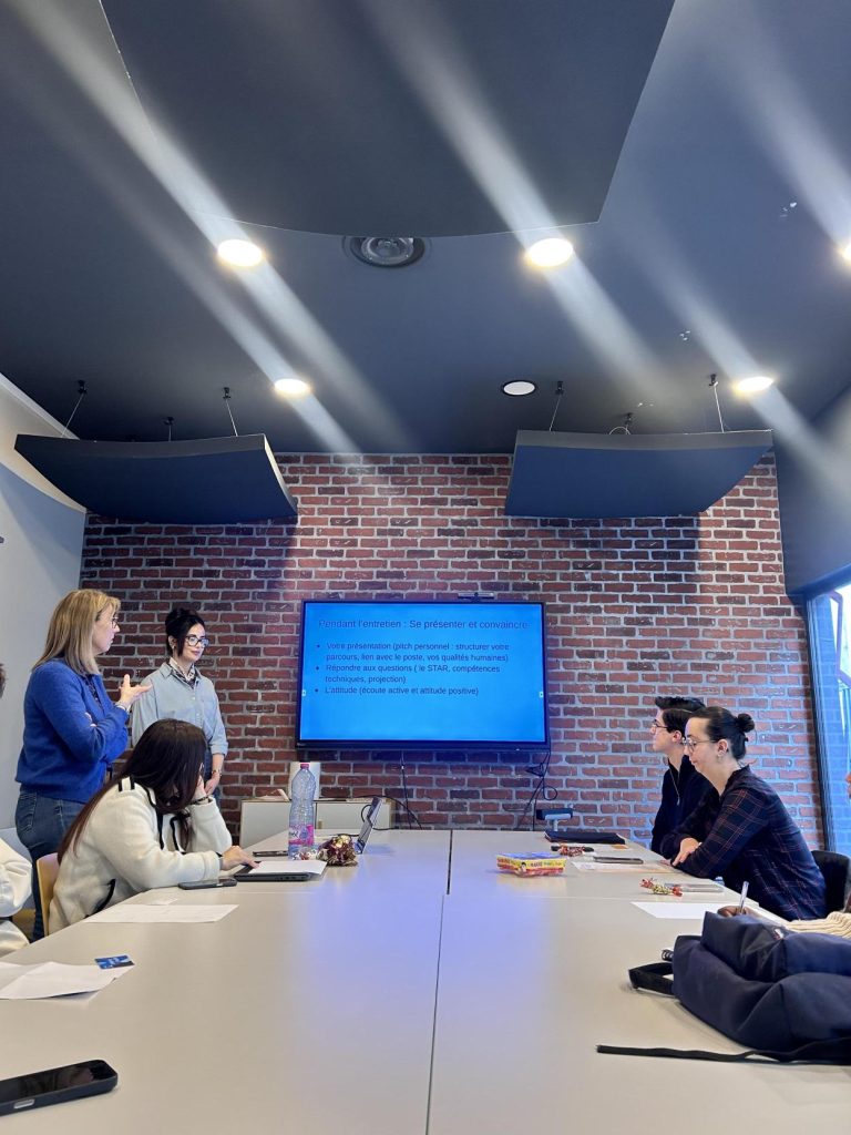 En parallèle, les étudiants de DCG première année ont participé à une session de simulations d’entretien conduite par deux professionnelles de Randstad : Sophie Perret et Nabila Mermouchi. Une immersion concrète dans les codes du monde du travail, avec des retours personnalisés sur la posture, la communication, l’argumentaire et l’adéquation aux attentes des recruteurs dans les métiers du chiffre.